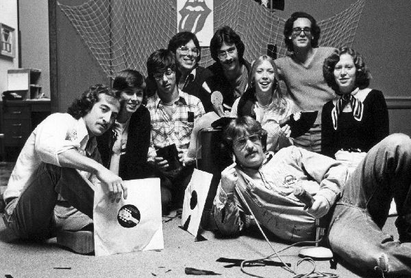 Above is a picture of WSUC-FM’s first management team: From left to right: Michael Flaster, Station Manager, two unknown Announcers, Rob Silber, Music Director, Dave Frisina, Announcer, Amy Dahlman, Announcer, Ron Palandrani, News Director, Candy Altman and, seated, Program Director, Corey Leibow.
