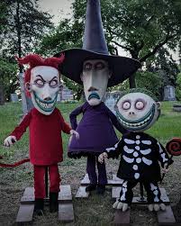 For a spookier Halloween costume, the three kids from The Nightmare Before Christmas are an excellent choice. Most trio costumes are the main characters of movies, but with these three being minor characters in the movie, it makes this costume much less basic. Still, they are well-known enough for people to know who you are and not have to wonder. To be Lock (left), you will need a red shirt and pants, a red mask, and red hair or a wig. For Shock (right), you will need a witch’s hat, green mask or face paint, and a purple dress. Lastly, for Barrel (middle), you will need a skeleton outfit that you can either buy or make, a white skeleton mask, an orange lollipop, and green hair or a wig. These costumes may take a bit of crafting, but they will surely be worth it when you get to see the exciting results.