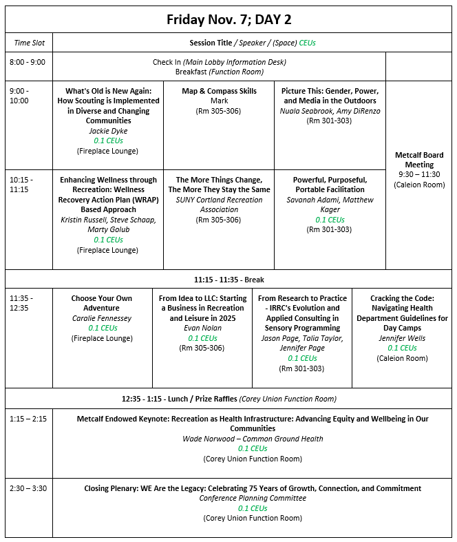 Please see the 75th Annual Recreation Conference’s Preliminary schedule below.